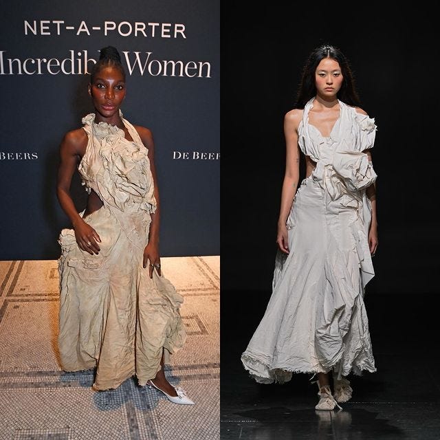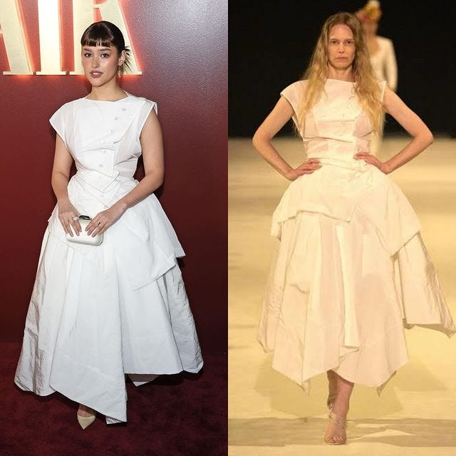- Paolo Carzana is one of my favorite independent designers, and it’s so exciting to see Michaela wear his work! I just love how he’s developed a very signature style, even so early on, while telling the most beautiful stories.