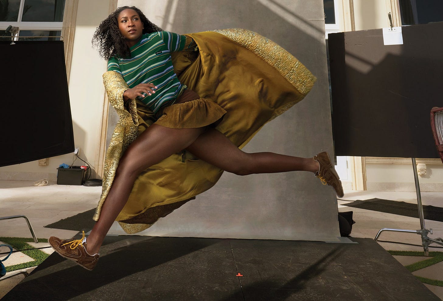 - Coco Gauff for Vogue; I love Coco and I am so happy for her, but I just wish we’d stop enabling Annie Leibovitz and her bad lightning. Especially when it comes to women of color. The editorial itself isn’t groundbreaking, but this is American Vogue, so what did we expect. I will say, I like that some of the pieces chosen, like a Sacai dress and Gucci set, have a bit of a tennis/sportswear feel. I also love that the Miu Miu look was shot in motion, since Miuccia is always considering functionality, and this Miu Miu girl felt like she was on the move, so. That Michael Kors dress was the only good thing from that collection, and the Chanel moment with the ‘Coco’ chain is cheeky and cute. Styled by Tabitha Simmons.